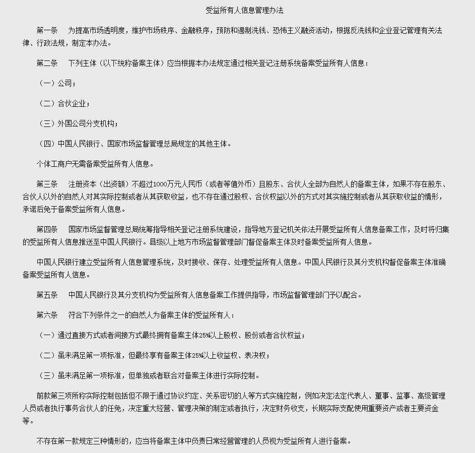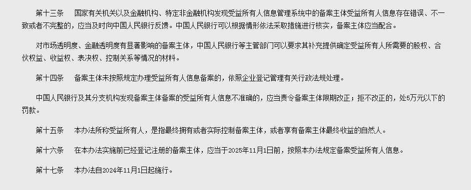中国人民银行 国家市场监督管理总局令〔2024〕第3号(受益所有人信息管理办法)