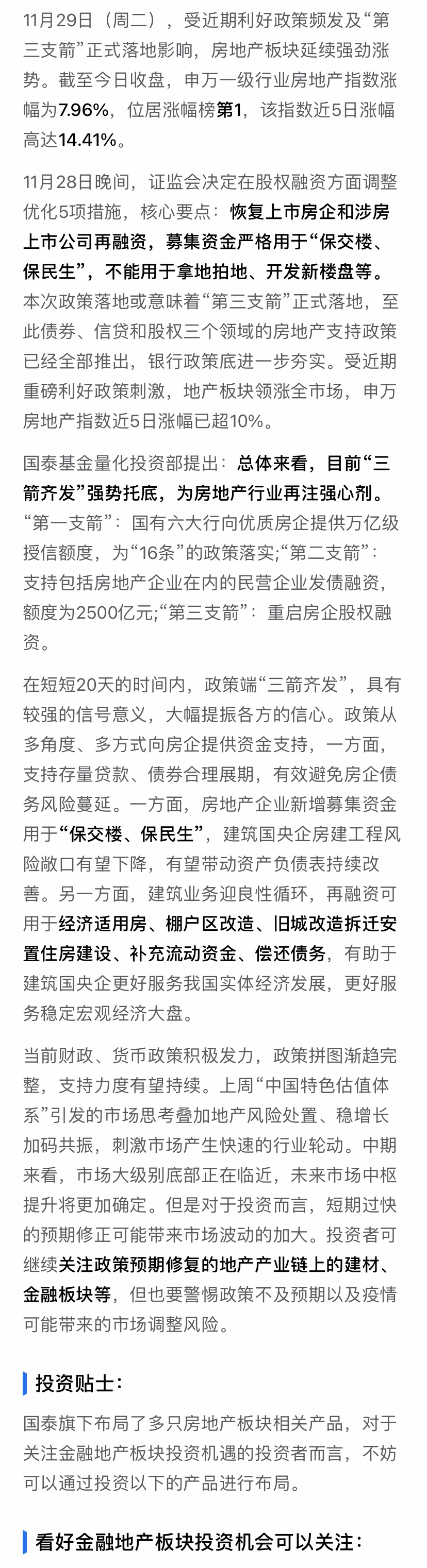 【异动点评】政策端“三箭齐发”,地产板块持续高亢