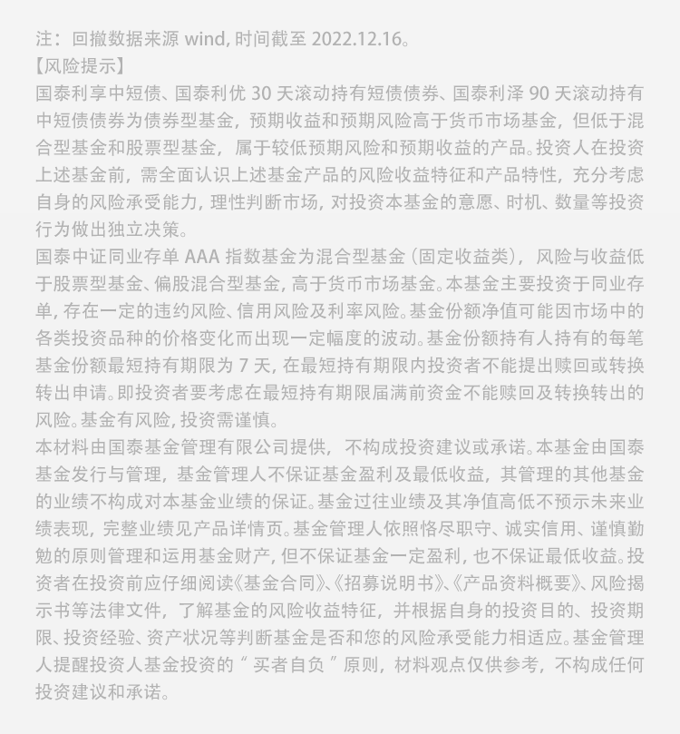 | 国泰中证同业存单AAA指数7天持有期 | 6.85% | 低 | 元起购 |