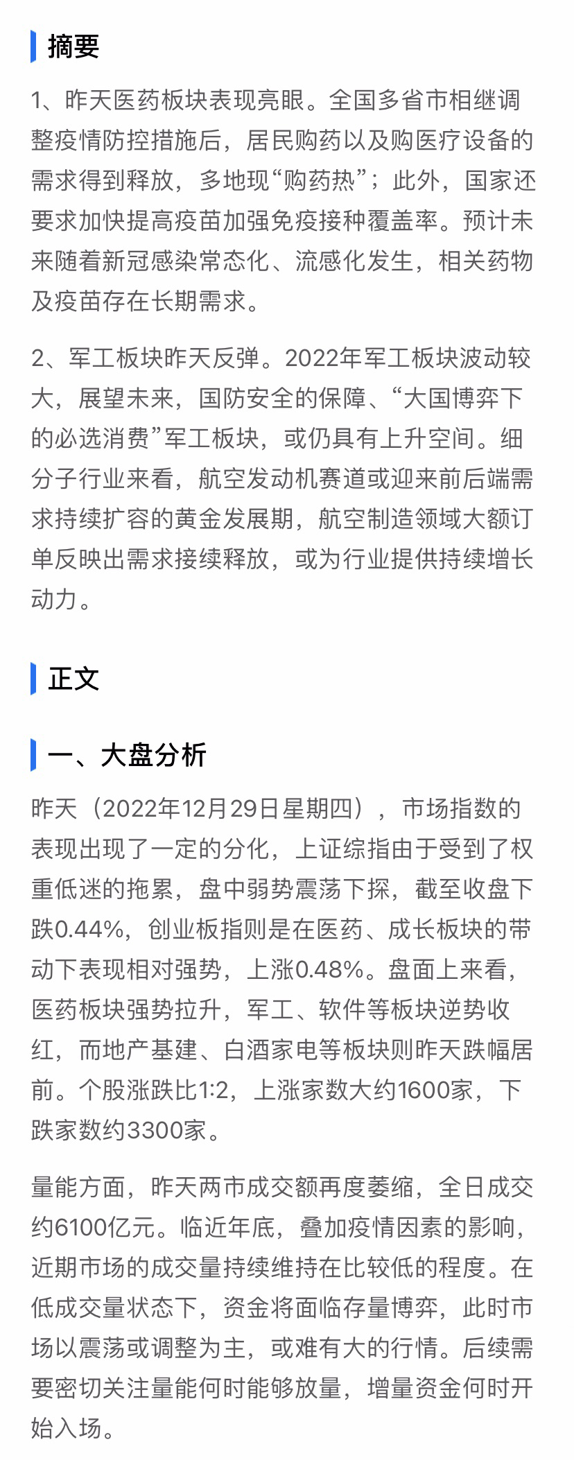 【国泰早安】大盘缩量调整,医药、军工反弹