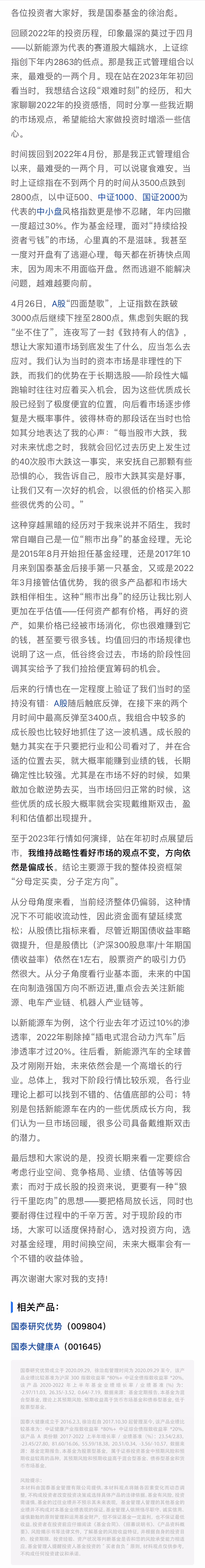 【国泰基金徐治彪】2022年度一封信:如何熬过投资中的艰难时刻?