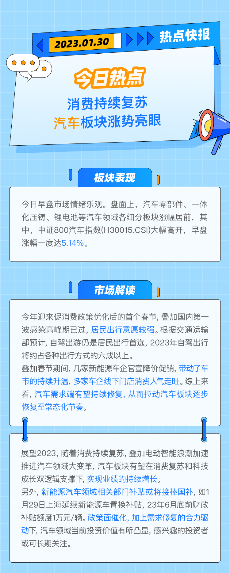 【热点快报】消费持续复苏,汽车板块涨势亮眼