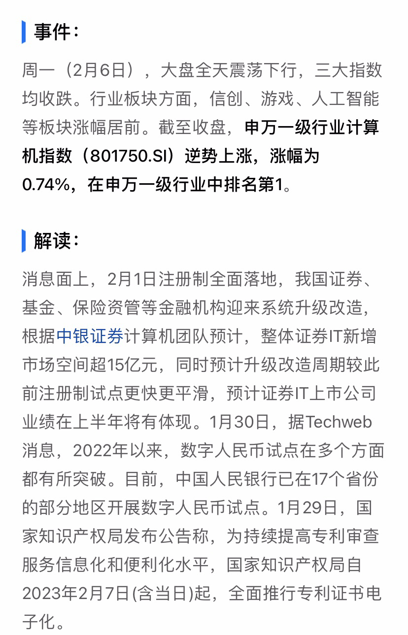 【异动点评】ChatGPT概念火热,计算机板块逆势上涨