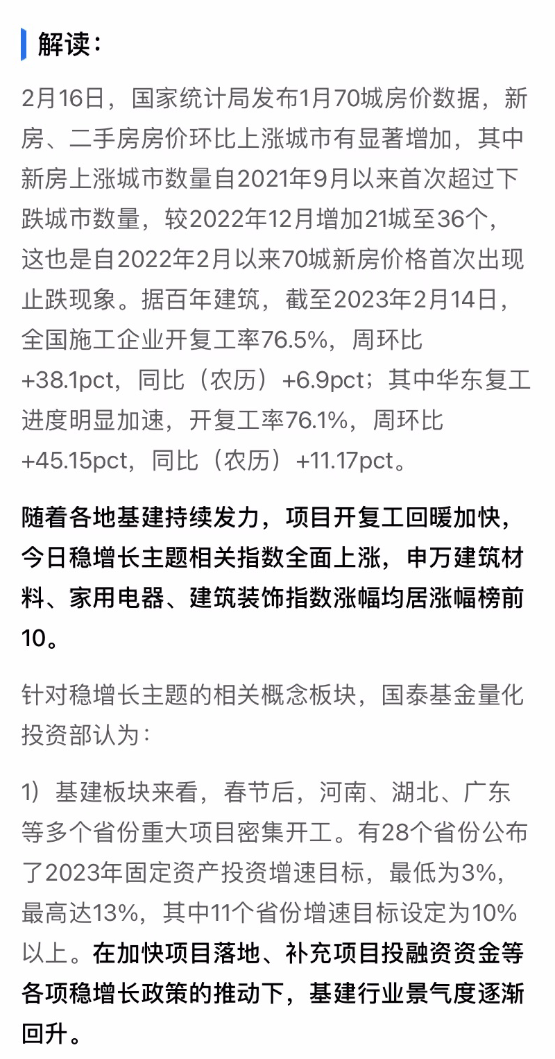 【异动点评】项目开复工回暖加快,稳增长概念集体走强