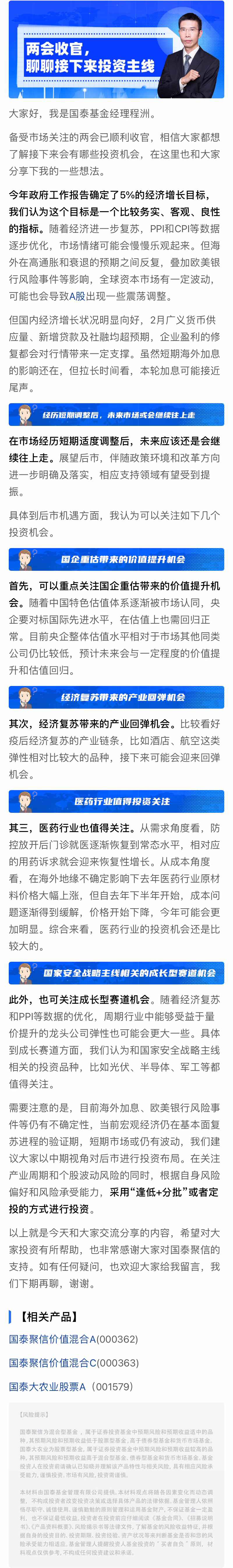 【国泰·基金经理解读】程洲: 两会收官,聊聊接下来投资主线