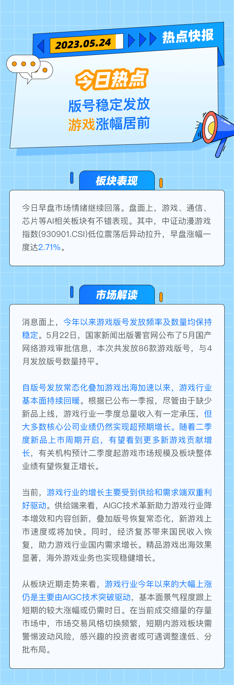【热点快报】版号稳定发放,游戏涨幅居前