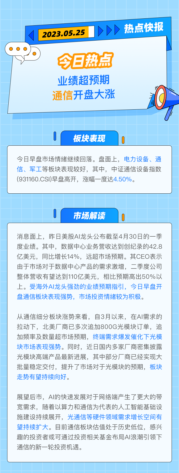 【热点快报】业绩超预期,通信开盘大涨