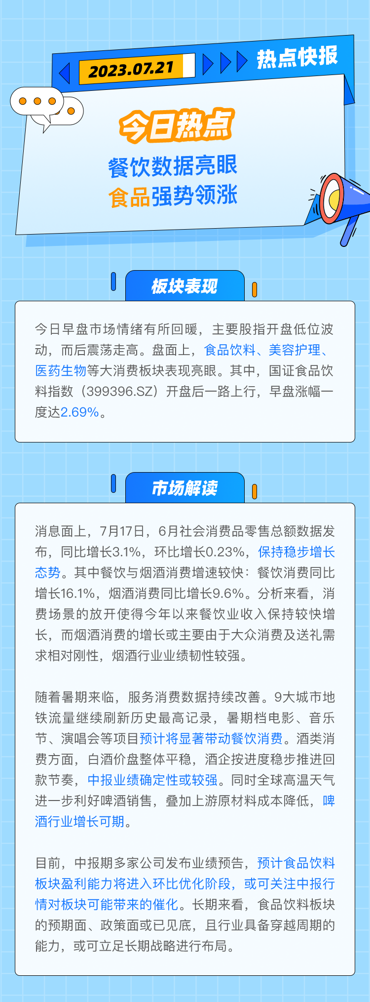 【热点快报】餐饮数据亮眼,食品强势领涨