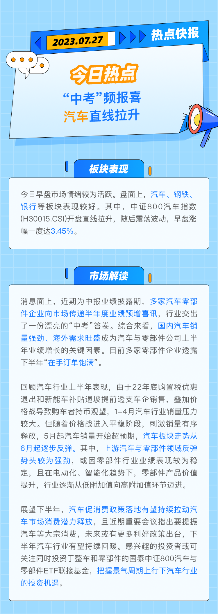 【热点快报】“中考”频报喜,汽车直线拉升