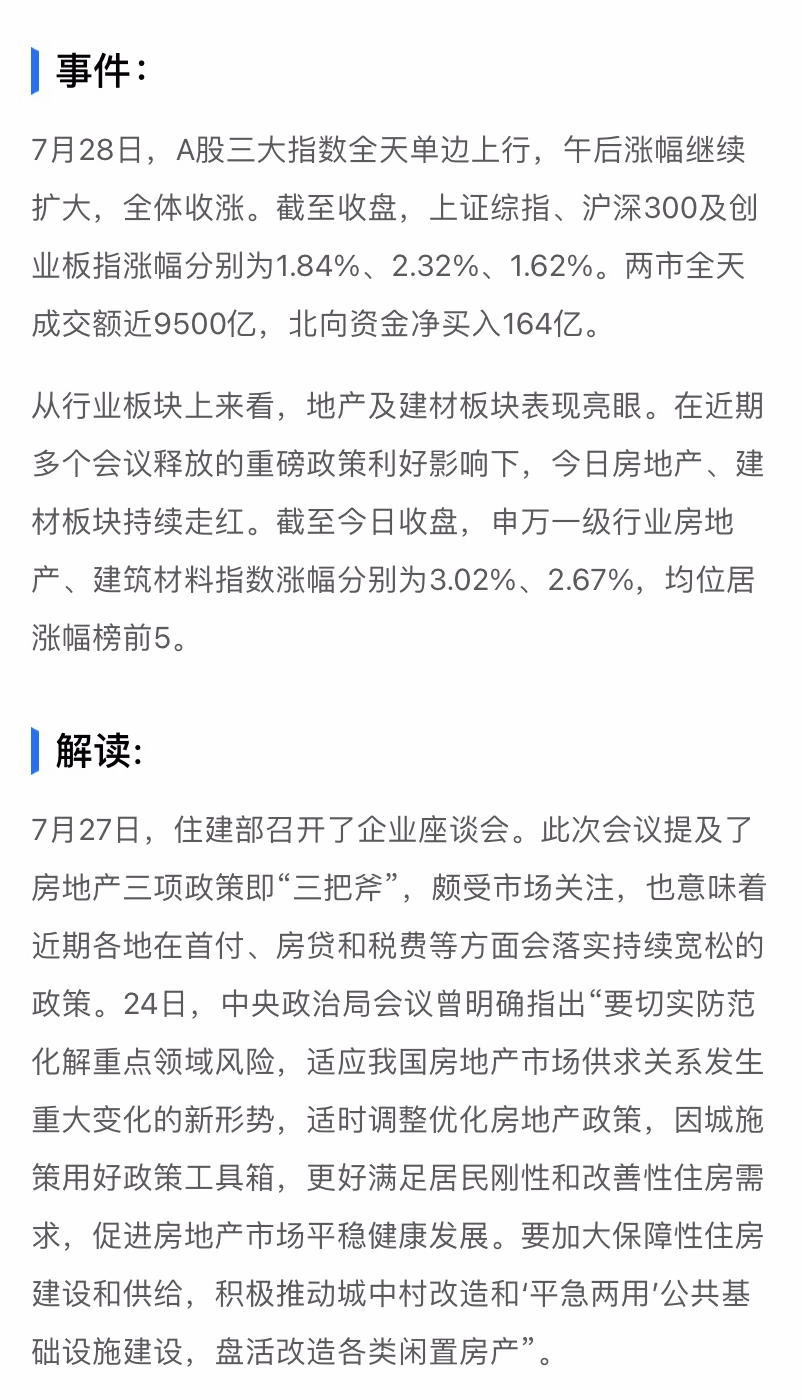 【异动点评】住建部提房地产政策“三板斧”,地产链强势反弹