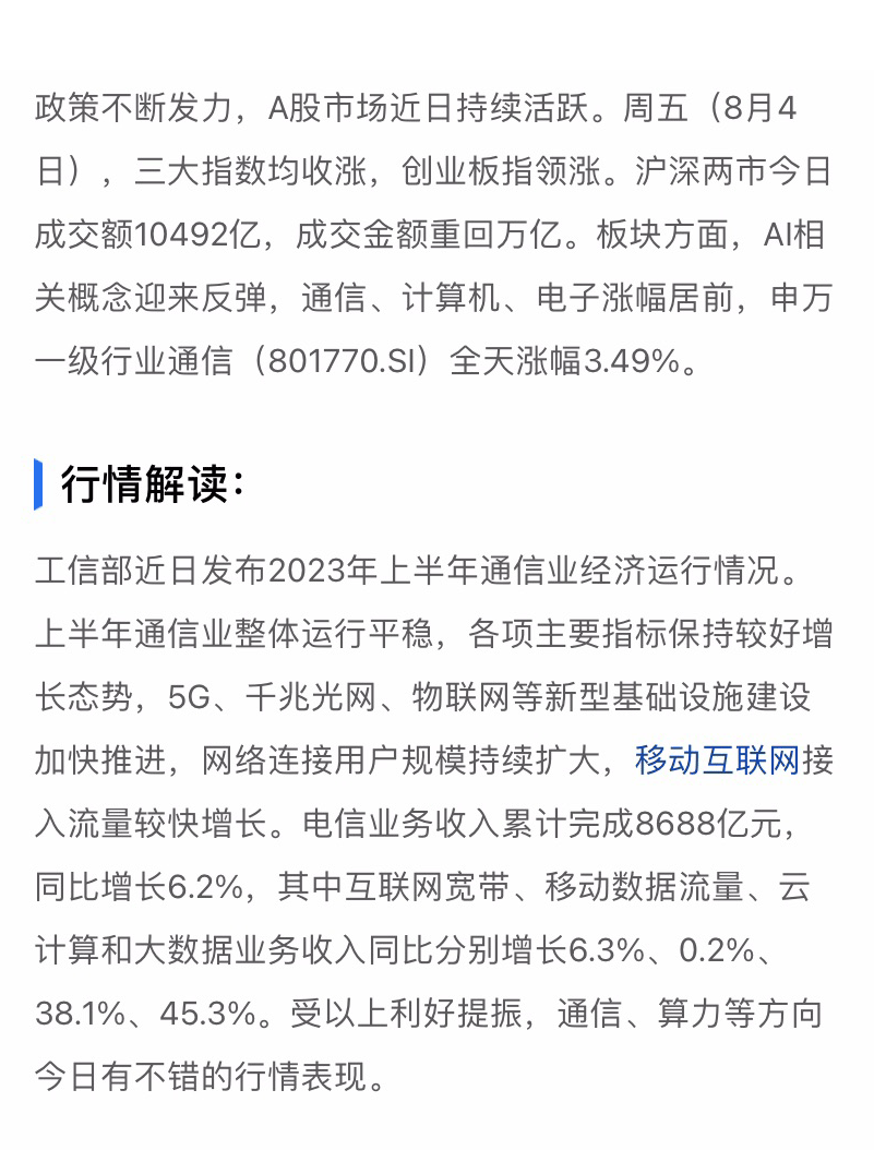 【异动点评】A股成交额重回万亿!通信为何领涨?