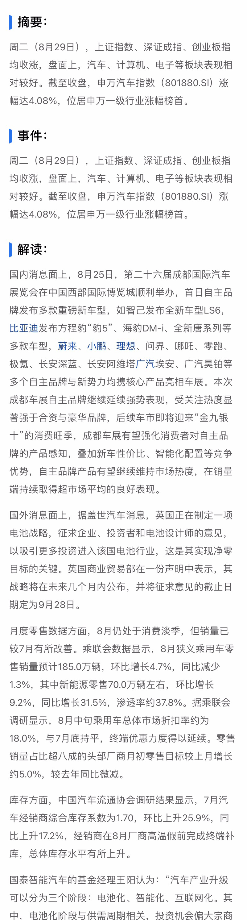 【异动点评】即将步入销售旺季,汽车板块领涨