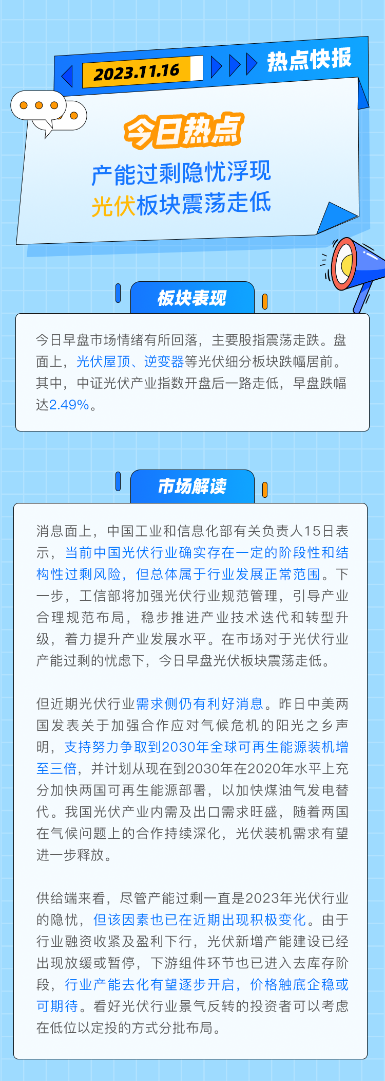 【热点快报】产能过剩隐忧浮现,光伏板块震荡走低