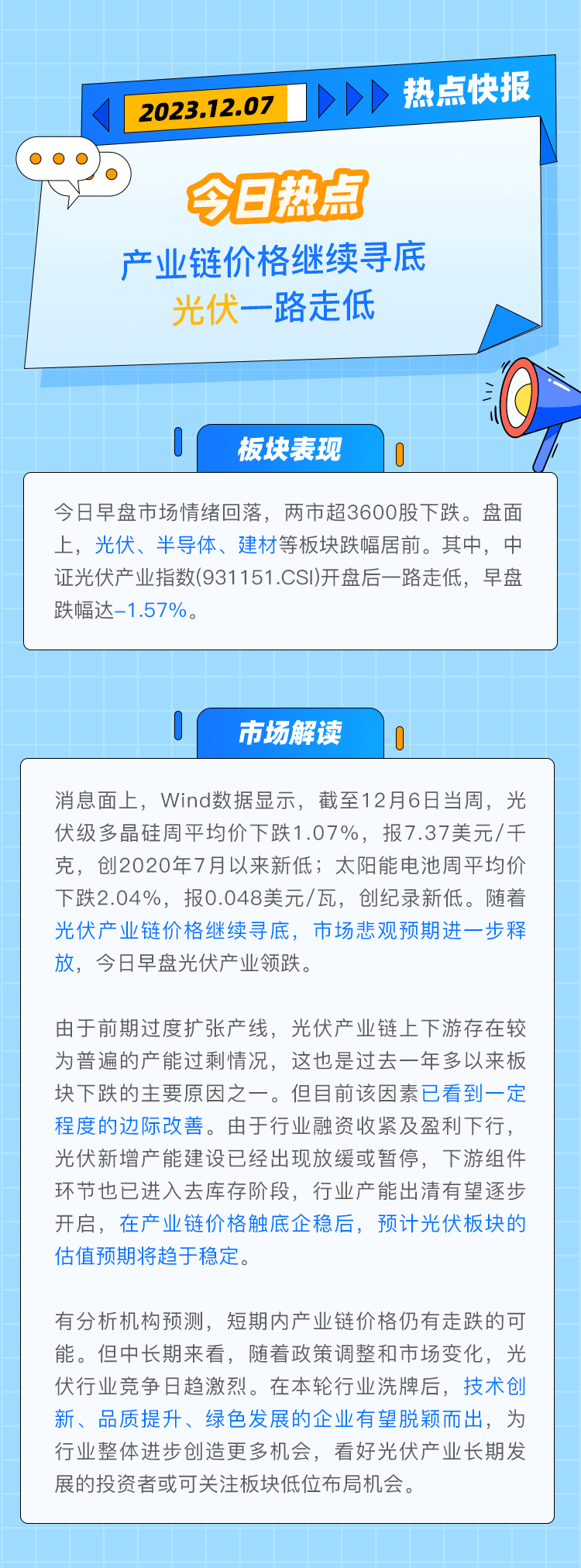 【热点快报】产业链价格继续寻底,光伏一路走低