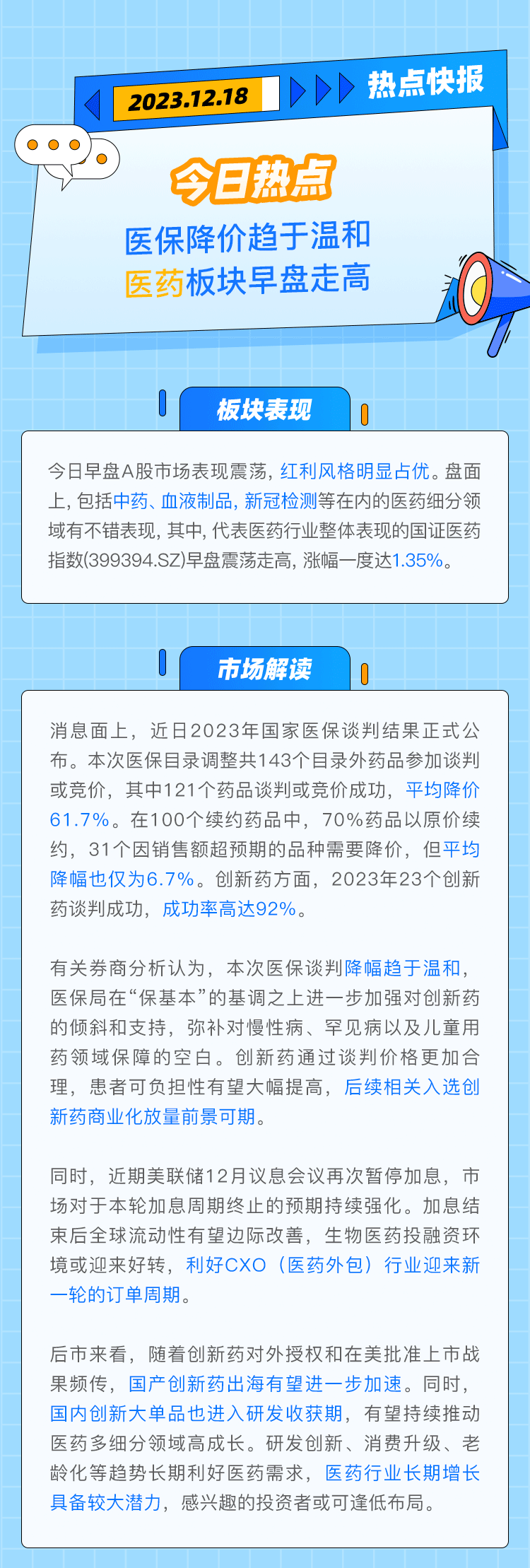 【热点快报】医保降价趋于温和,医药板块早盘走高