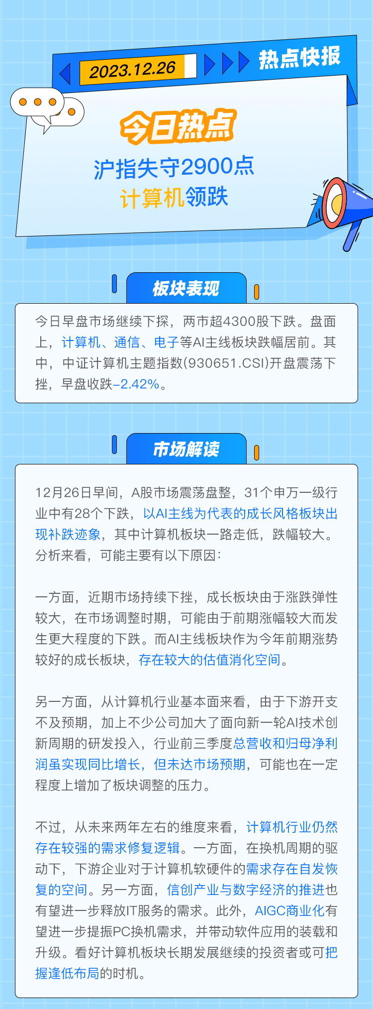 【热点快报】沪指失守2900点,计算机领跌