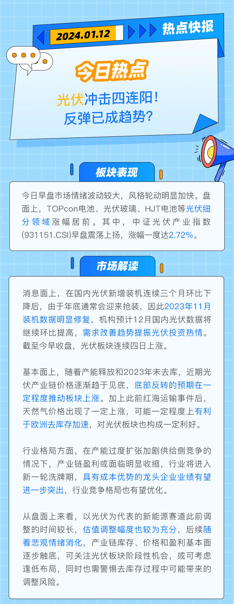 【热点快报】光伏冲击四连阳!反弹已成趋势?