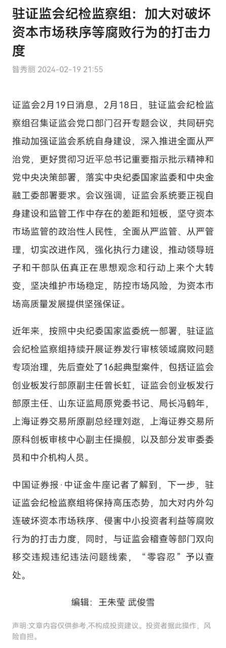 驻证监会纪检监察组:加大对破坏资本市场秩序等腐败行为的打击力度