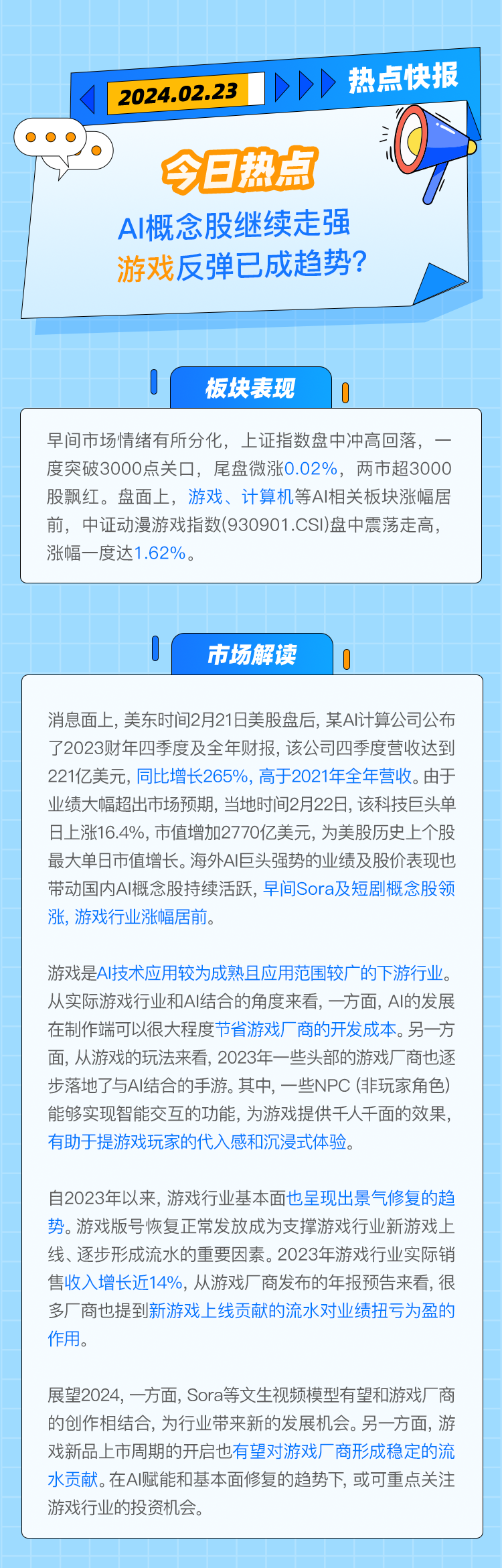 【热点快报】AI概念股继续走强,游戏反弹已成趋势?