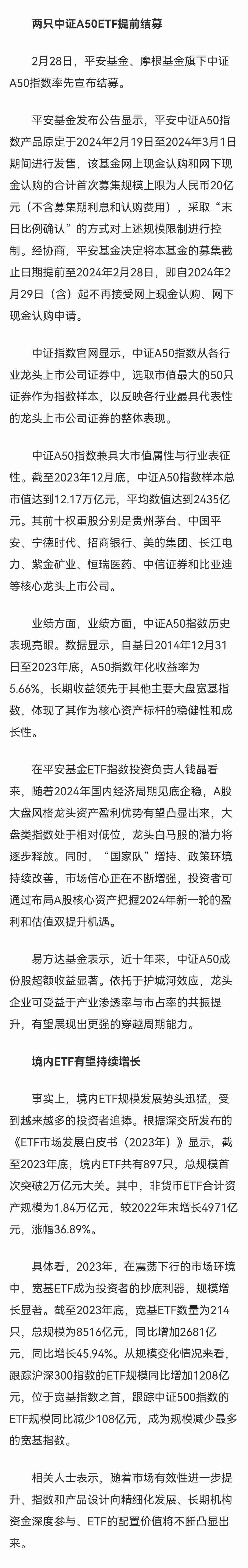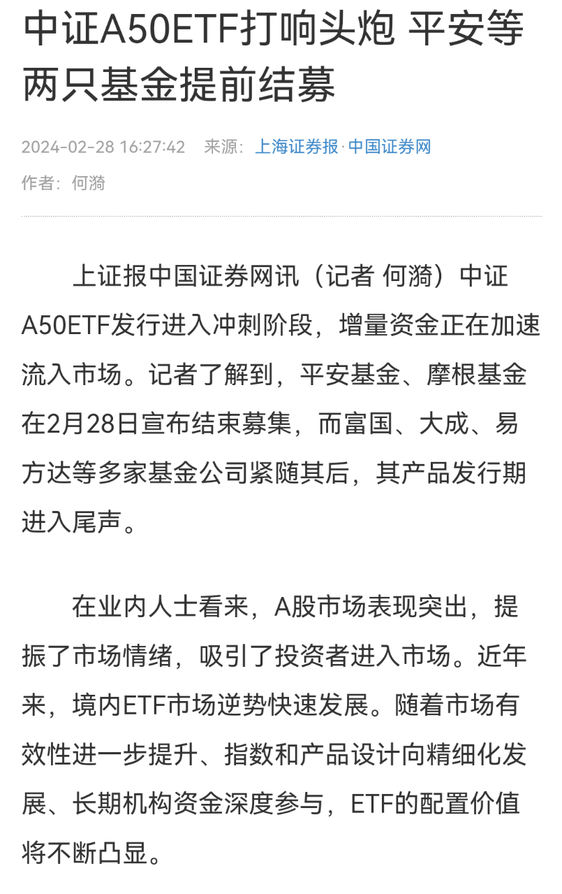 中证A50ETF打响头炮 平安等两只基金提前结募