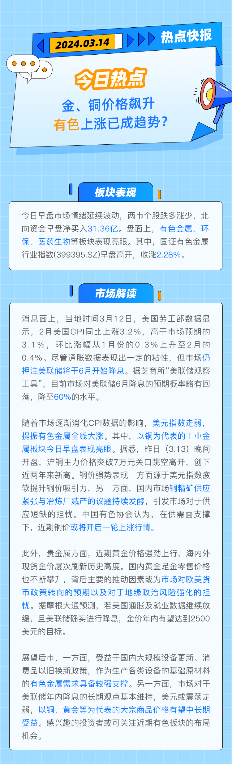【热点快报】金、铜价格飙升,有色上涨已成趋势?