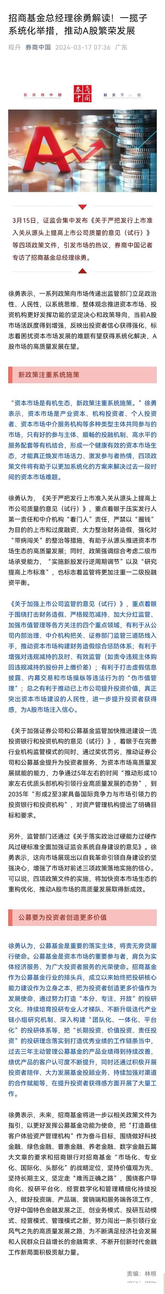 招商基金总经理徐勇解读!一揽子系统化举措,推动A股繁荣发展