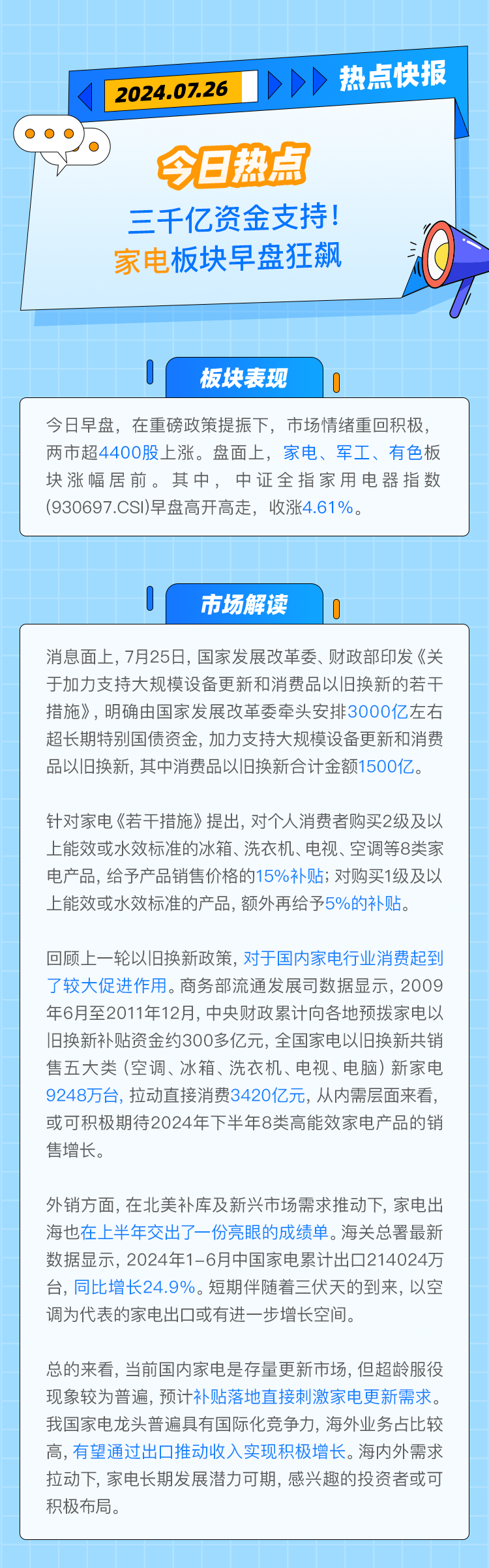 【热点快报】三千亿资金支持!家电板块早盘狂飙