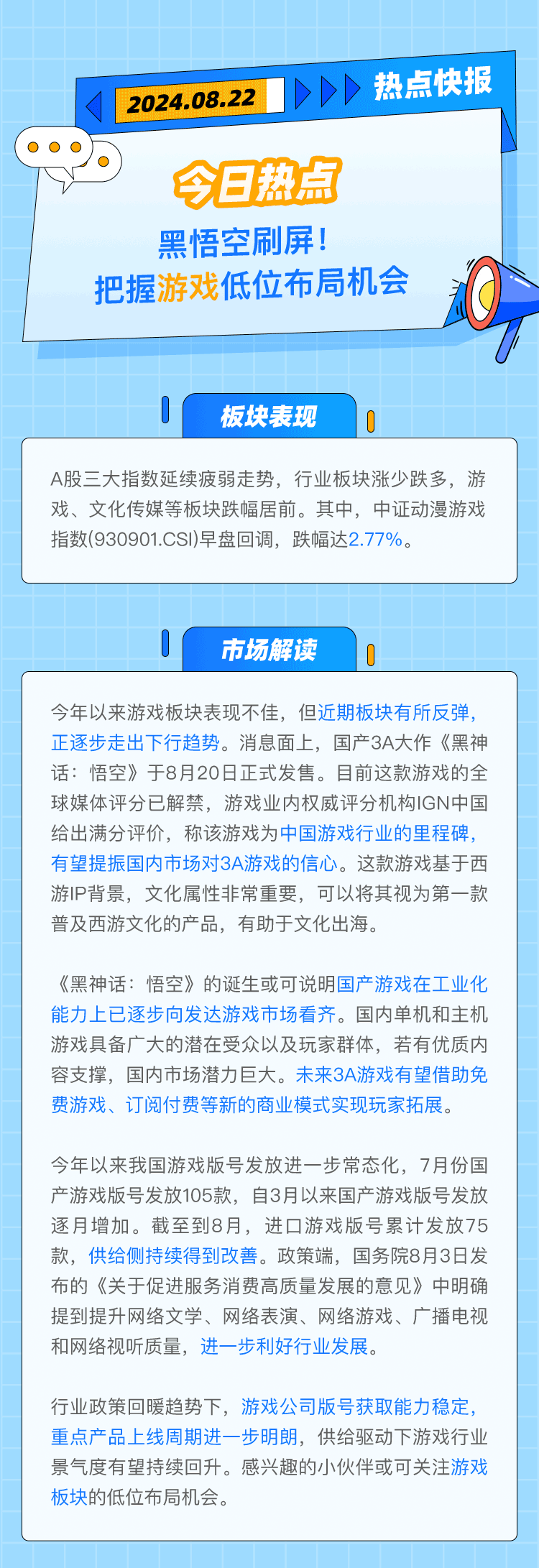 【热点快报】黑悟空刷屏!把握游戏低位布局机会
