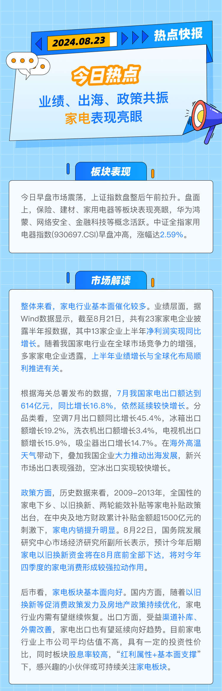 【热点快报】业绩、出海、政策共振,家电表现亮眼
