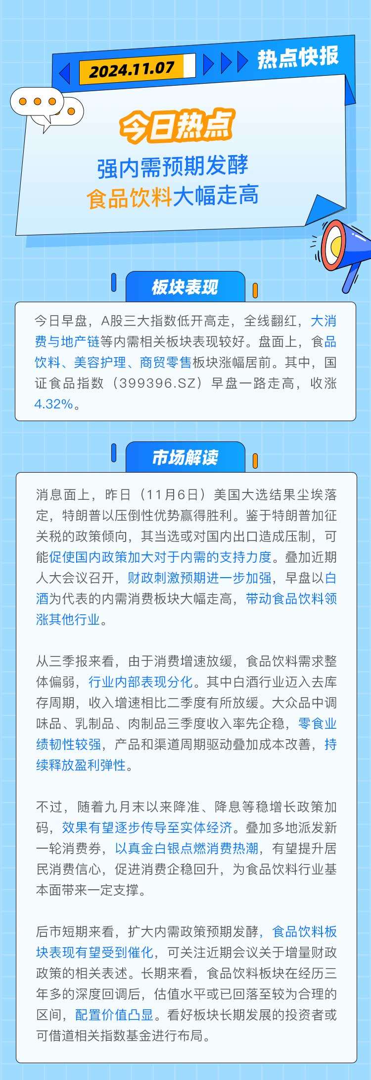 【热点快报】强内需预期发酵,食品饮料大幅走高