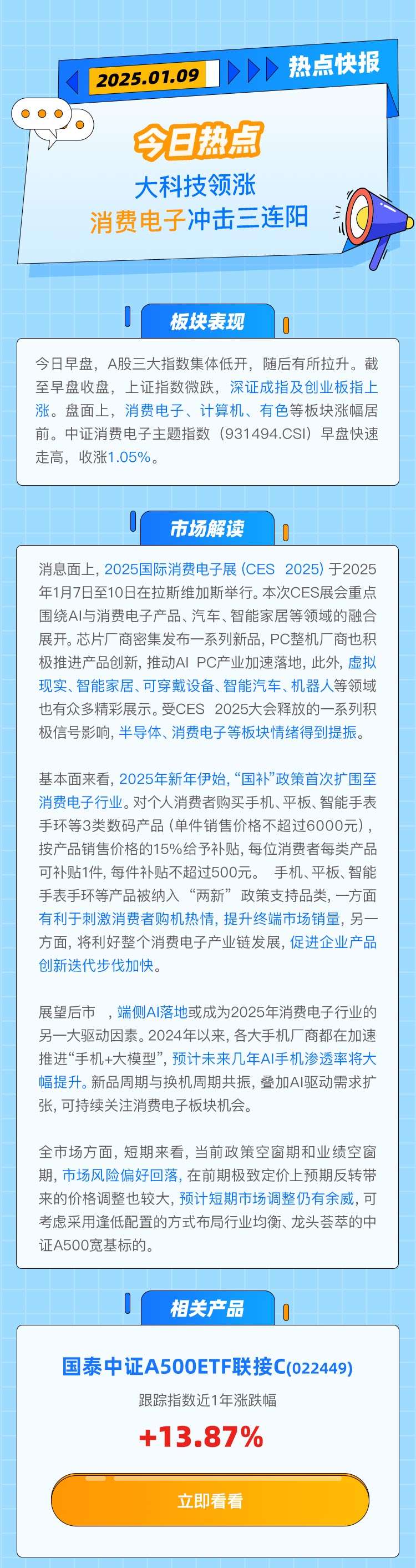 【热点快报】大科技领涨,消费电子冲击三连阳