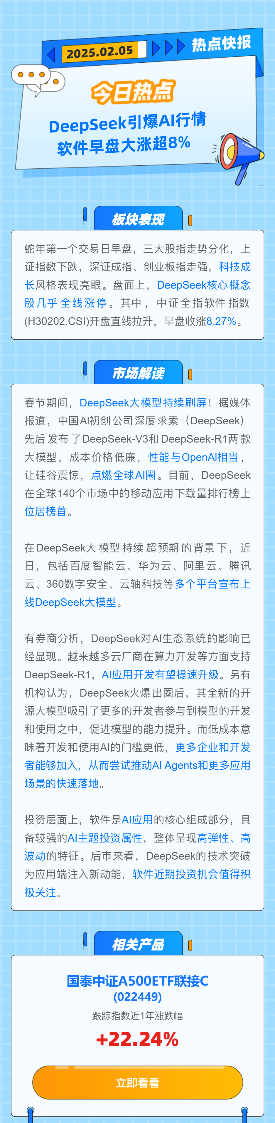 【热点快报】DeepSeek引爆AI行情 软件早盘大涨超8%