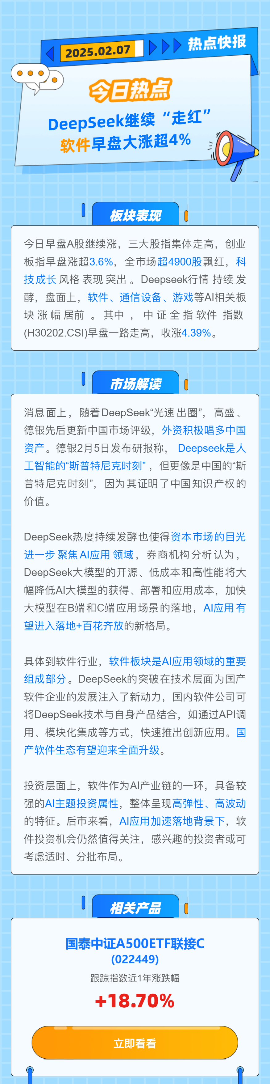 【热点快报】DeepSeek继续“走红” 软件早盘大涨超4%