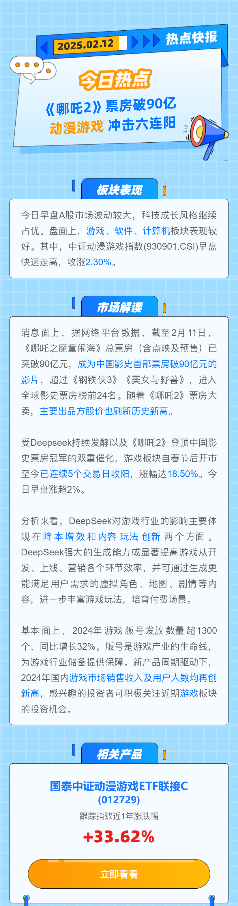 【热点快报】《哪吒2》票房破90亿 动漫游戏冲击六连阳
