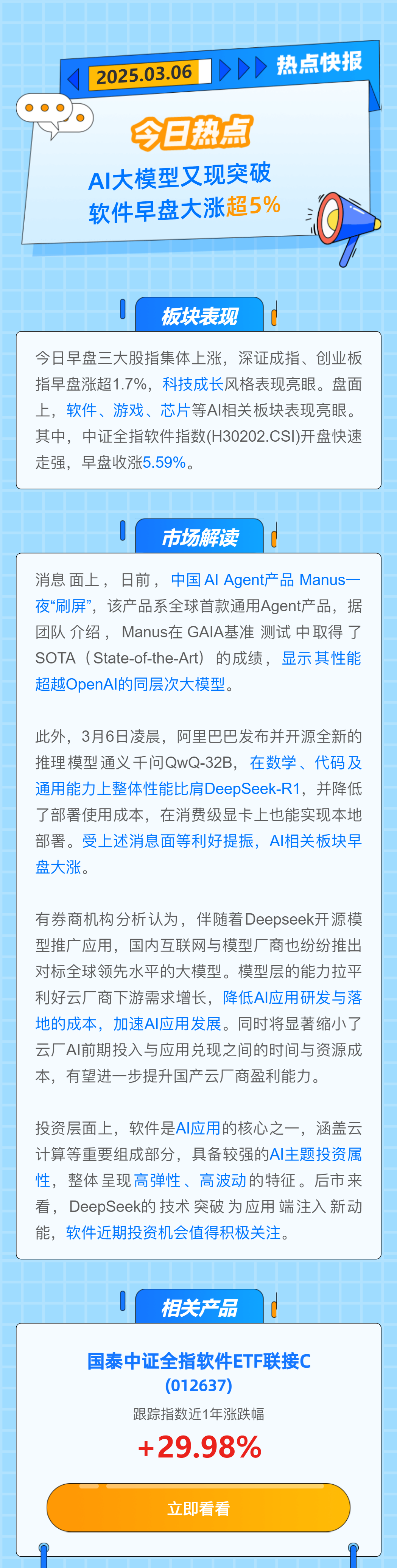 【热点快报】AI大模型又现突破 软件早盘大涨超5%