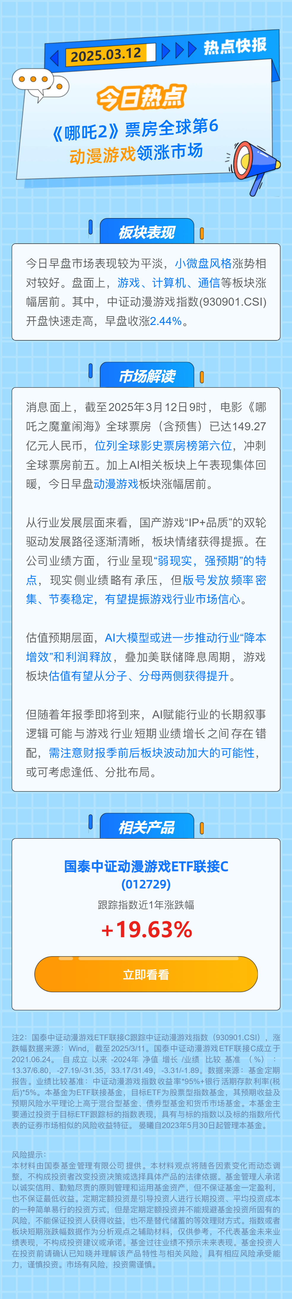 【热点快报】《哪吒2》票房全球第6 动漫游戏领涨市场