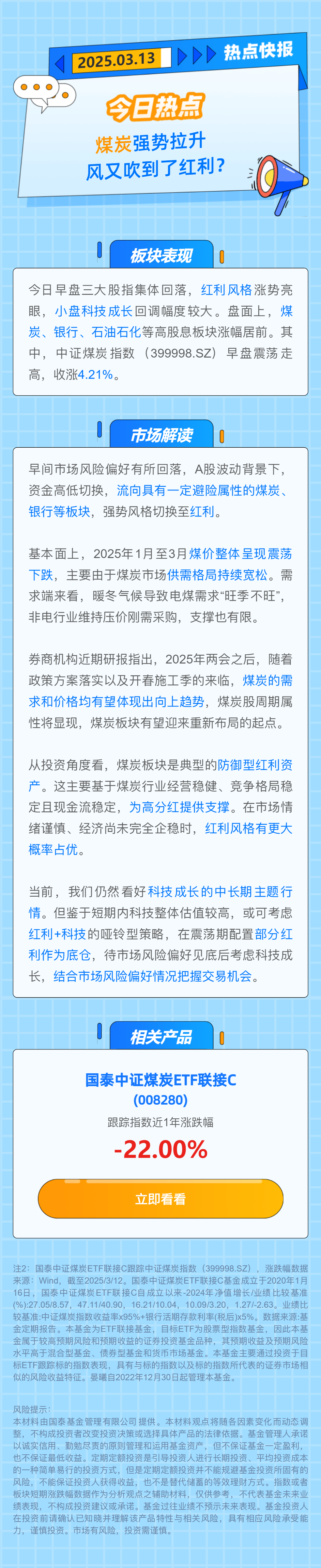 【热点快报】煤炭强势拉升 风又吹到了红利?