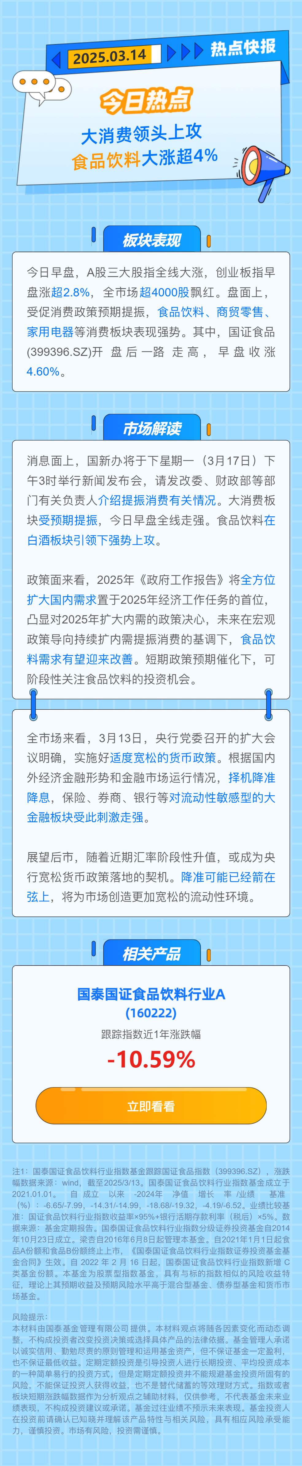 【热点快报】大消费领头上攻 食品饮料大涨超4%