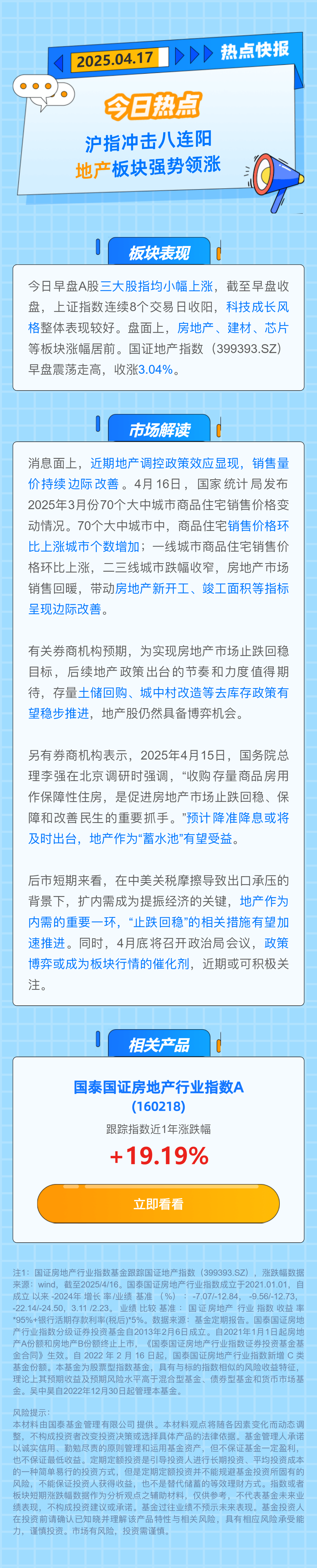 【热点快报】沪指冲击八连阳 地产板块强势领涨