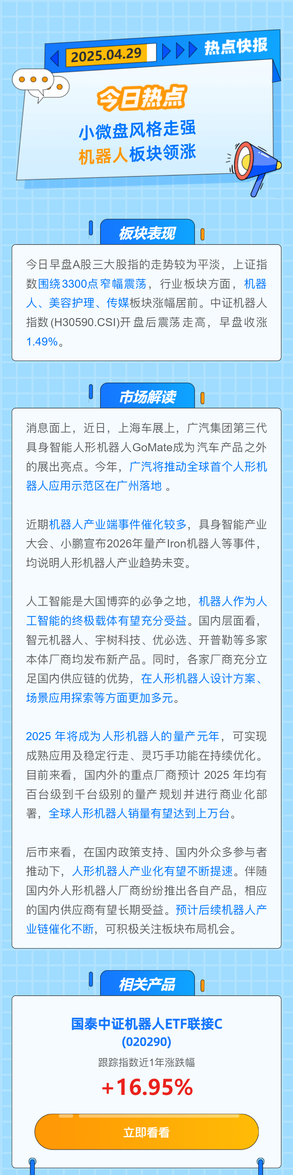 【热点快报】 小微盘风格走强 机器人板块领涨