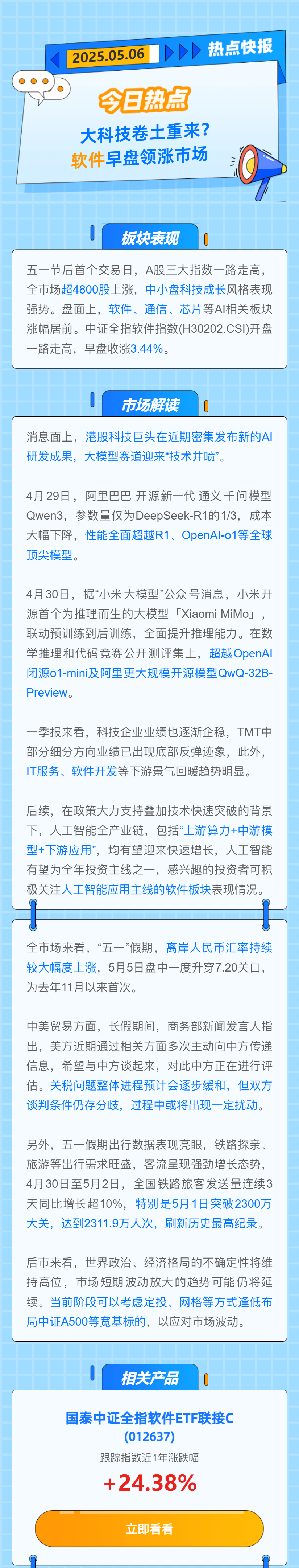 【热点快报】 大科技卷土重来? 软件早盘领涨市场