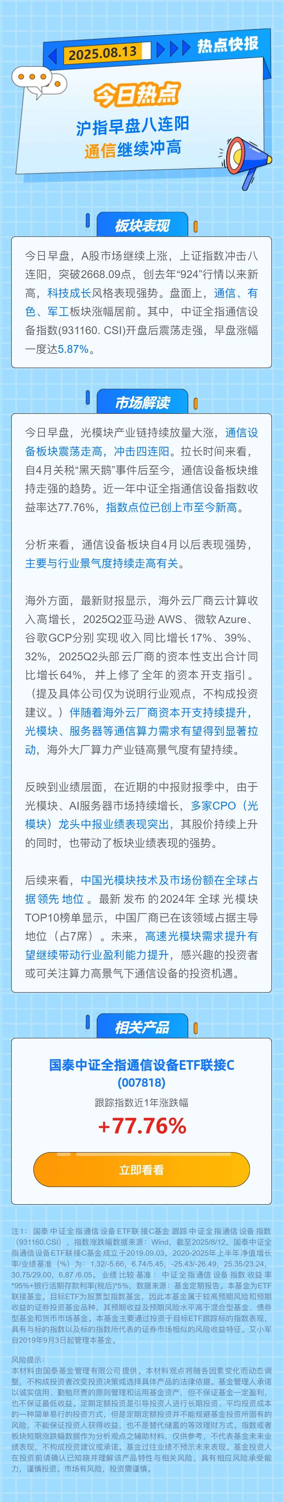 【热点快报】沪指早盘八连阳 通信继续冲高