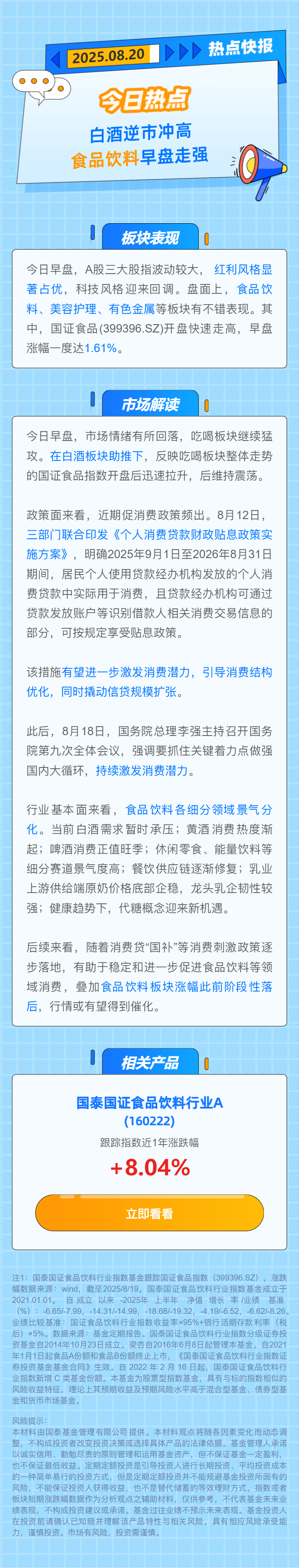 【热点快报】白酒逆市冲高 食品饮料早盘走强