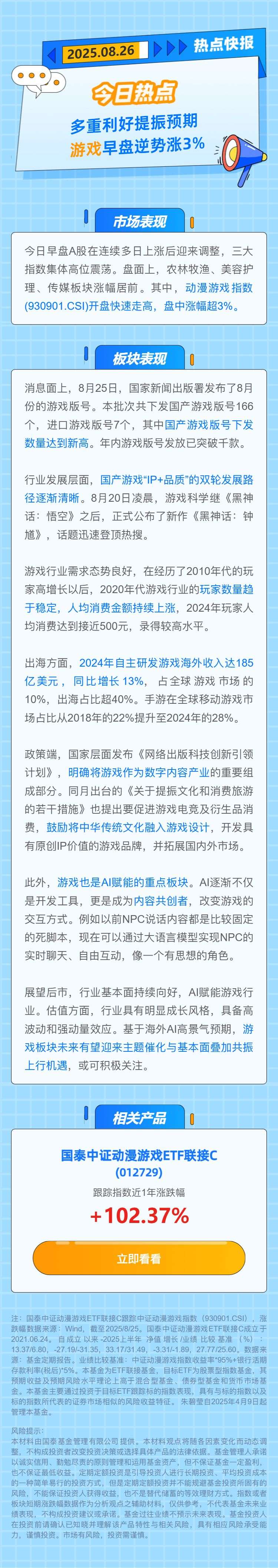 【热点快报】多重利好提振预期 游戏早盘逆势涨3%