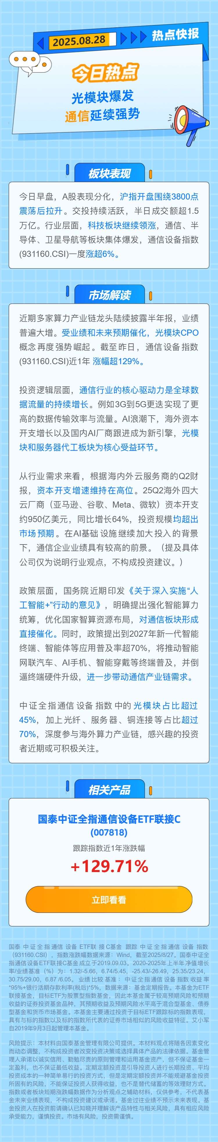 【热点快报】光模块爆发 通信延续强势