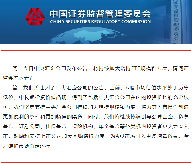 证监会新闻发言人就中央汇金公司增持公告答记者问