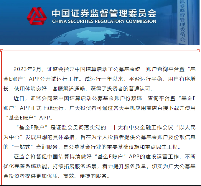 证监会同意“基金E账户”APP正式上线运行