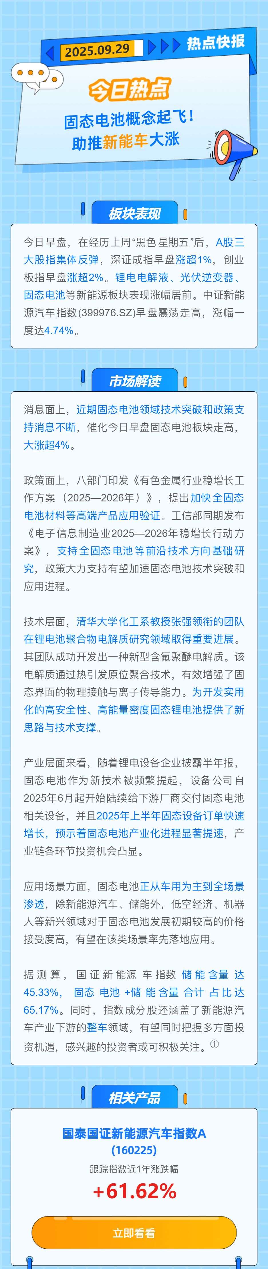 【热点快报】固态电池概念起飞!助推新能车大涨