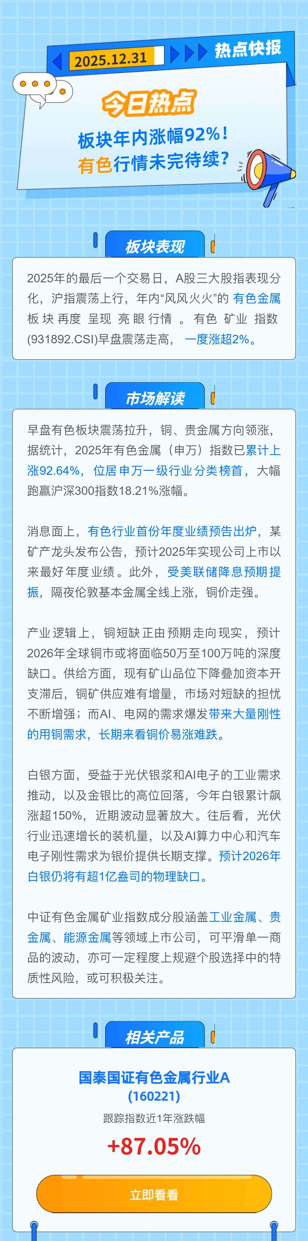 【热点快报】板块年内涨幅92%! 有色行情未完待续?