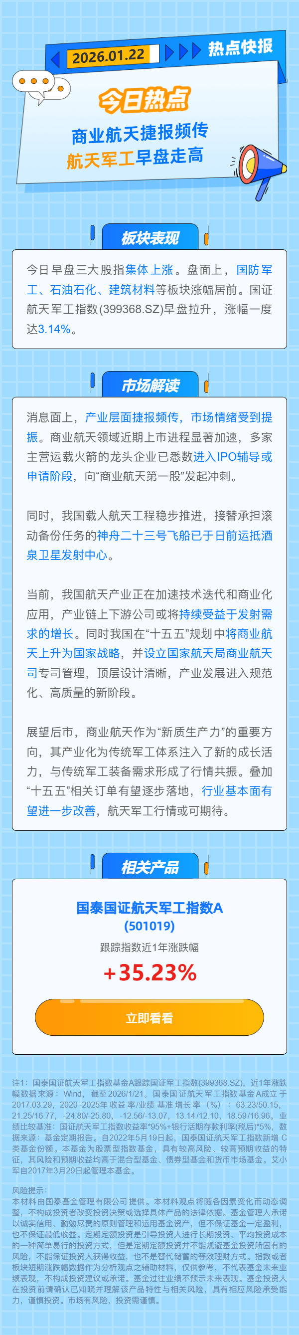 【热点快报】商业航天捷报频传 航天军工早盘走高